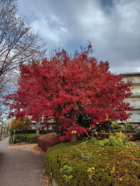 このもみじ、なかなか紅くならず、今年は紅葉も厳しいかな、とも思いましたが12月に近づくとさすがに紅くなりました。